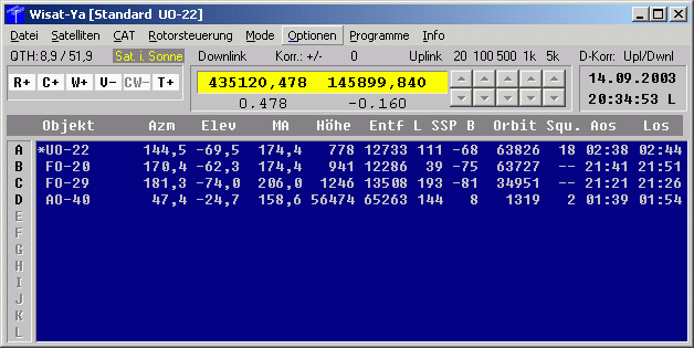 Steuerfunktionen wie SatPC32. Es übernimmt automatisch die in SatPC32